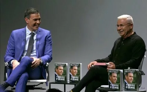 Pedro Sánchez ha presentado este lunes 11 de diciembre su libro "Tierra firme" con Jorge Javier Vázquez como presentador del acto y ha desvelado unos detalles del vínculo que mantienen y que tiene relación con la tele. Vázquez arrancaba el acto hablando de que muchos creen que son amigos, que quedan, que van de vacaciones juntos... pero nada más alejado de la realidad.