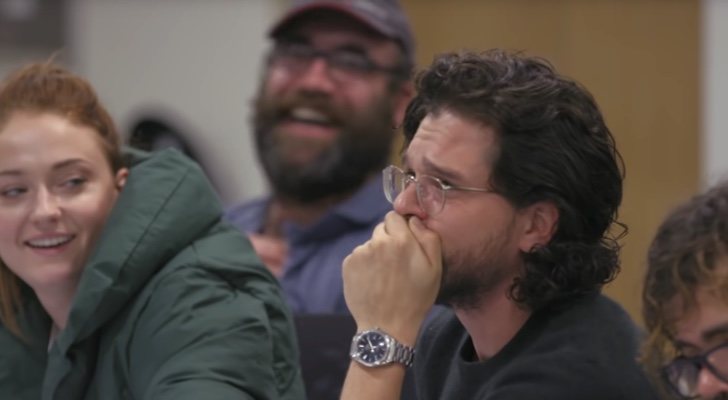 Pero el momento de este tipo más emotivo es el que vivió Kit Harington al descubrir que su personaje, Jon Snow, era el responsable de la muerte de Daenerys. Nada más leerlo, el británico se llevó las manos a la cabeza en un evidente gesto de sorpresa, y dirigió su mirada directamente a la que será objeto de su traición, Emilia Clarke, que inmediatamente le sonríe y asiente.