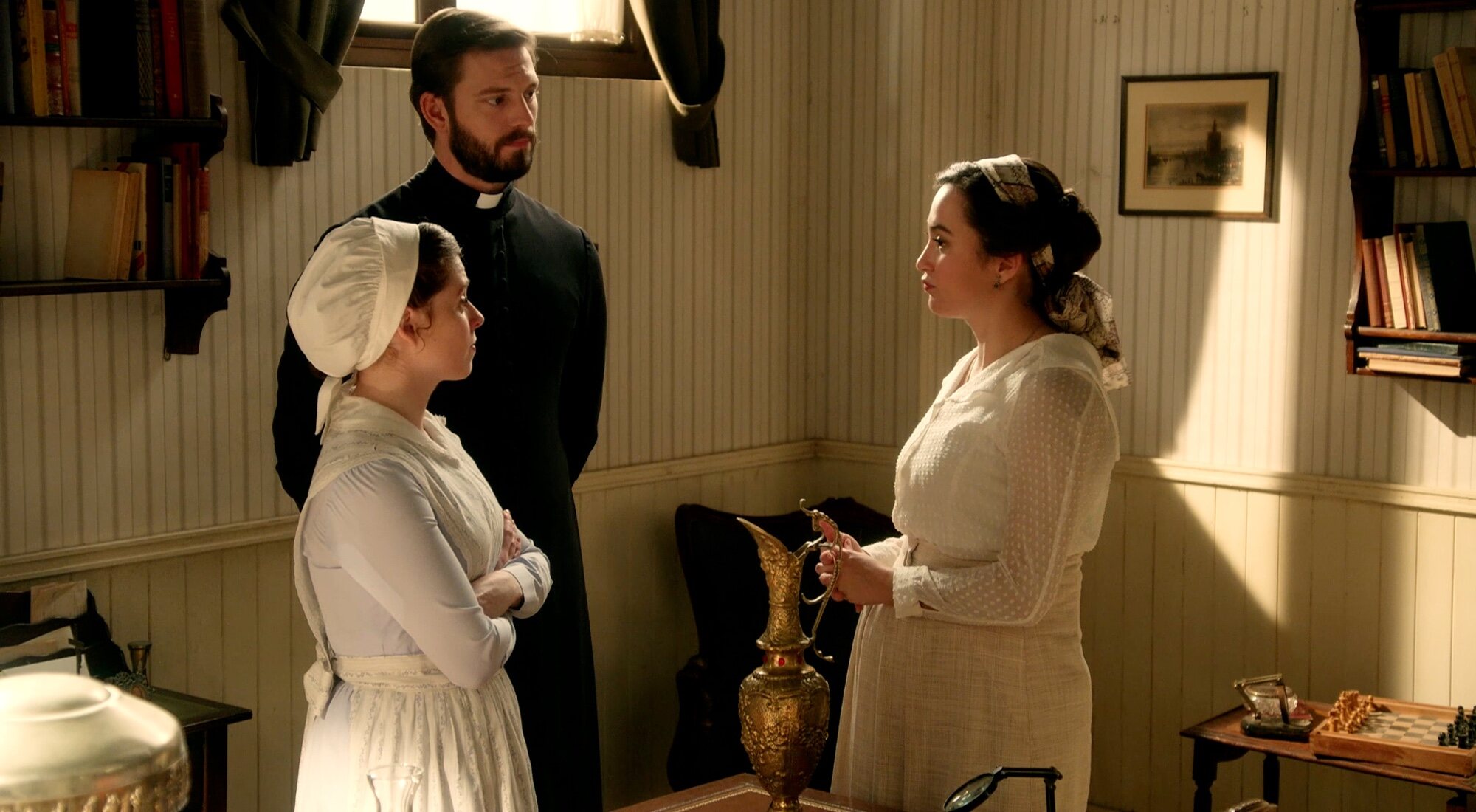 Catalina ha pillado al padre Samuel robando un jarrón, así que ha ido a preguntarle la razón. Por otro lado, Jana le ha confirmado al servicio que se marchará a Italia junto a Manuel, mientras que Marcelo le ha comunicado a Teresa y Vera que se va de La Promesa para que no ser descubierto por los hombres del duque de Sarabia. En cuanto al pasadizo secreto, Jana y Teresa lo han conseguido abrir. Esto ha llevado a Jana a contarle a Curro su sospecha de que Cruz mató a Tomás y ocultó el crimen gracias a dicha habitación. Además, cree que la marquesa contó con la ayuda de una persona fiel.