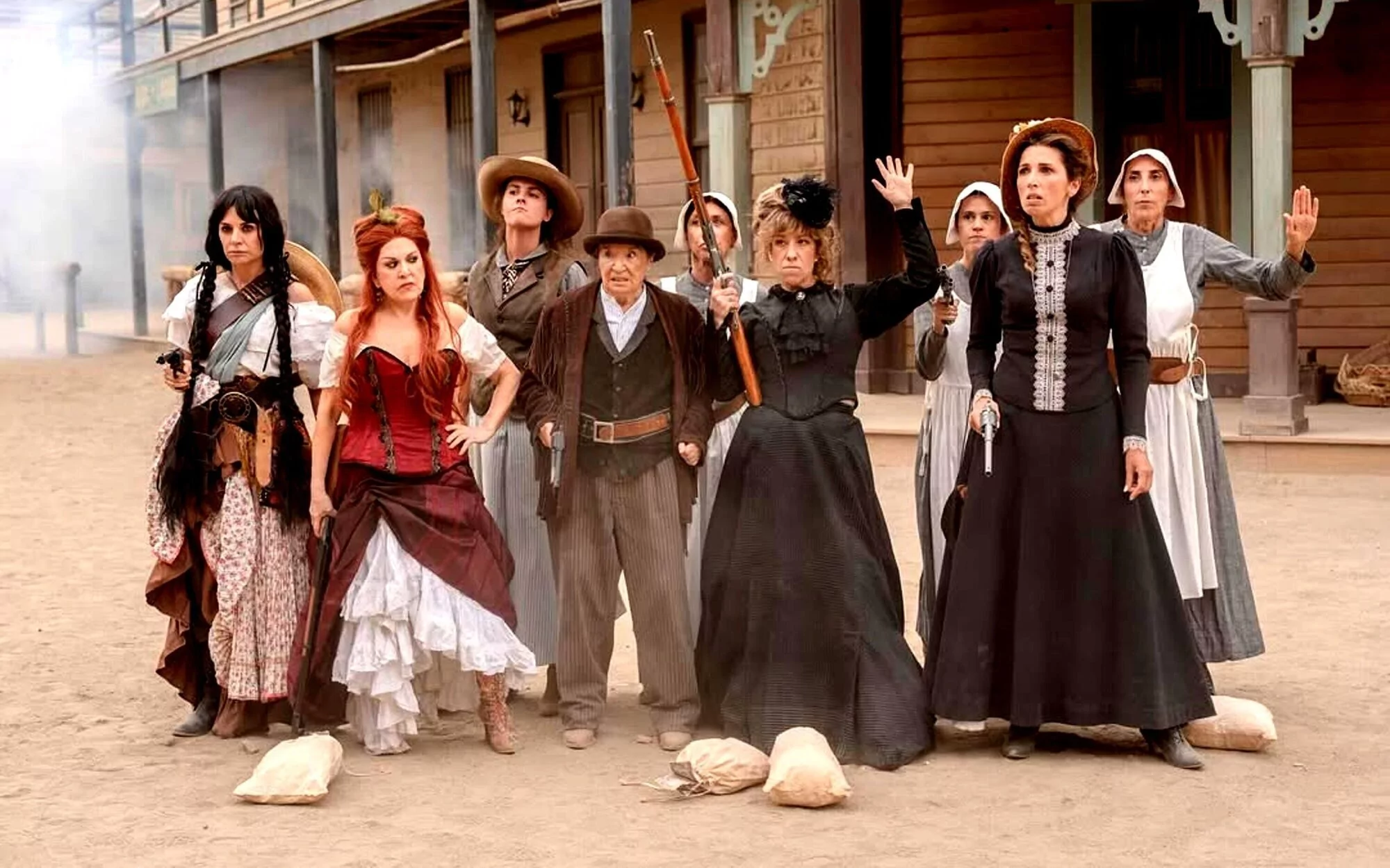 El tráiler de este peculiar episodio muestra parte de esta aventura con estética de western. En ella, las mujeres del pueblo sueñan con escapar de esa ciudad sin ley y deciden organizar un asalto al banco para conseguir el dinero necesario. Entre caballos, duelos y salones, el capítulo combina la esencia cómica de la serie con una producción más cinematográfica. Además, los guionistas han aprovechado la ocasión para rendir homenaje a los seguidores más veteranos con un guiño a Mauri y Fernando, los personajes de 'Aquí no hay quien viva' interpretados por Luis Merlo y Adrià Collado, que vuelven a encontrarse y se funden en un beso lleno de nostalgia.