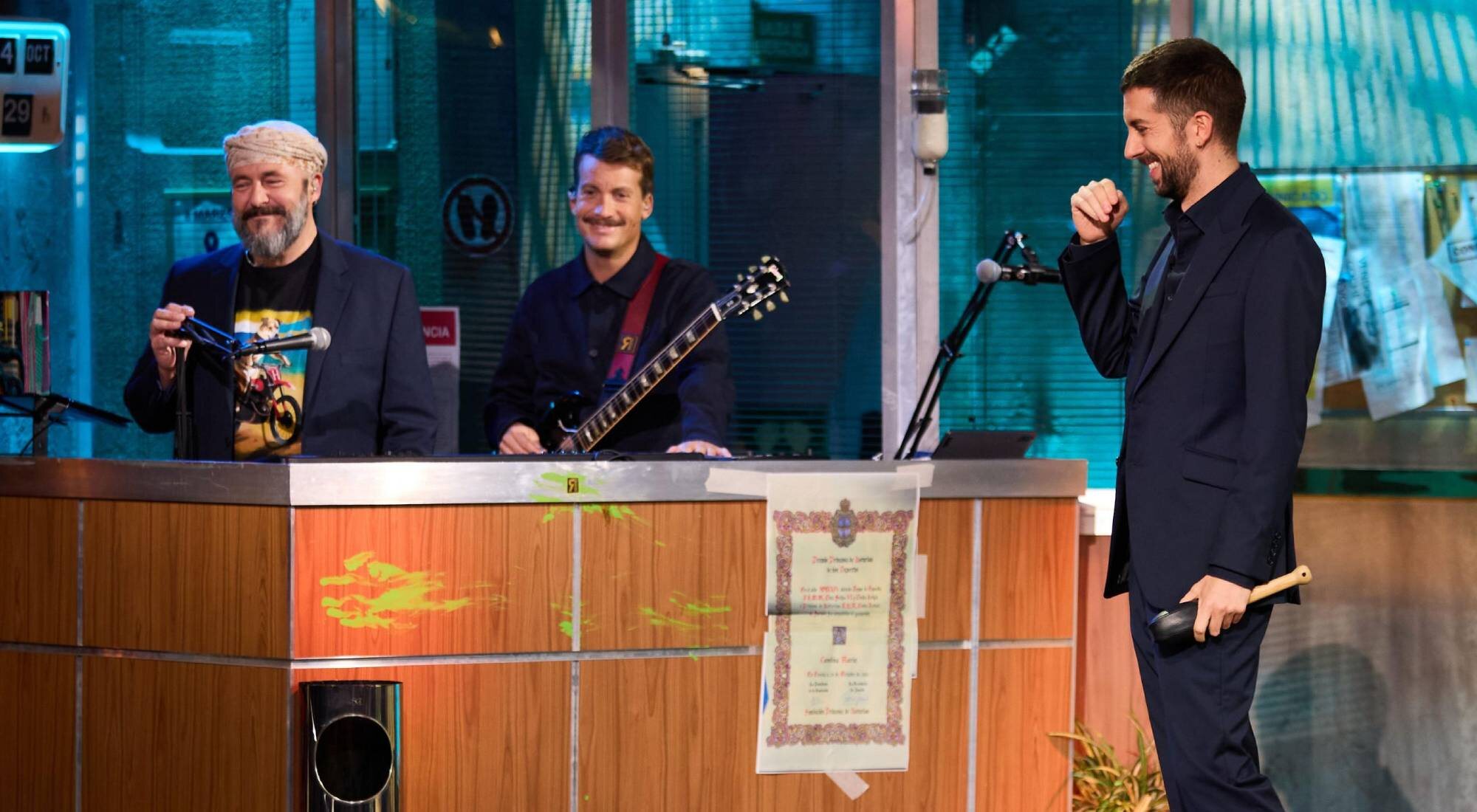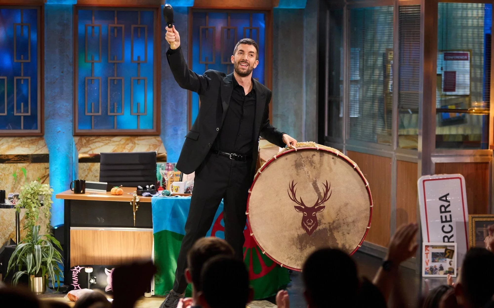 "Muchas gracias a toda la gente que vio el documental de ciervos del jueves pasado", dedicó Broncano, después de iniciar el programa con la habitual ovación, mientras se acercaba al bombo que acaba de usar, en el que habían grabado la imagen de un ciervo, en la cara opuesta al "fuerza, Valencia" puesto desde la trágica DANA. El público iniciaba entonces una ronda de berreos como los ciervos, para desconcierto de Ricardo Castella, mientras Broncano no podía contener la risa: "¿Esto son abucheos o es berrea?"