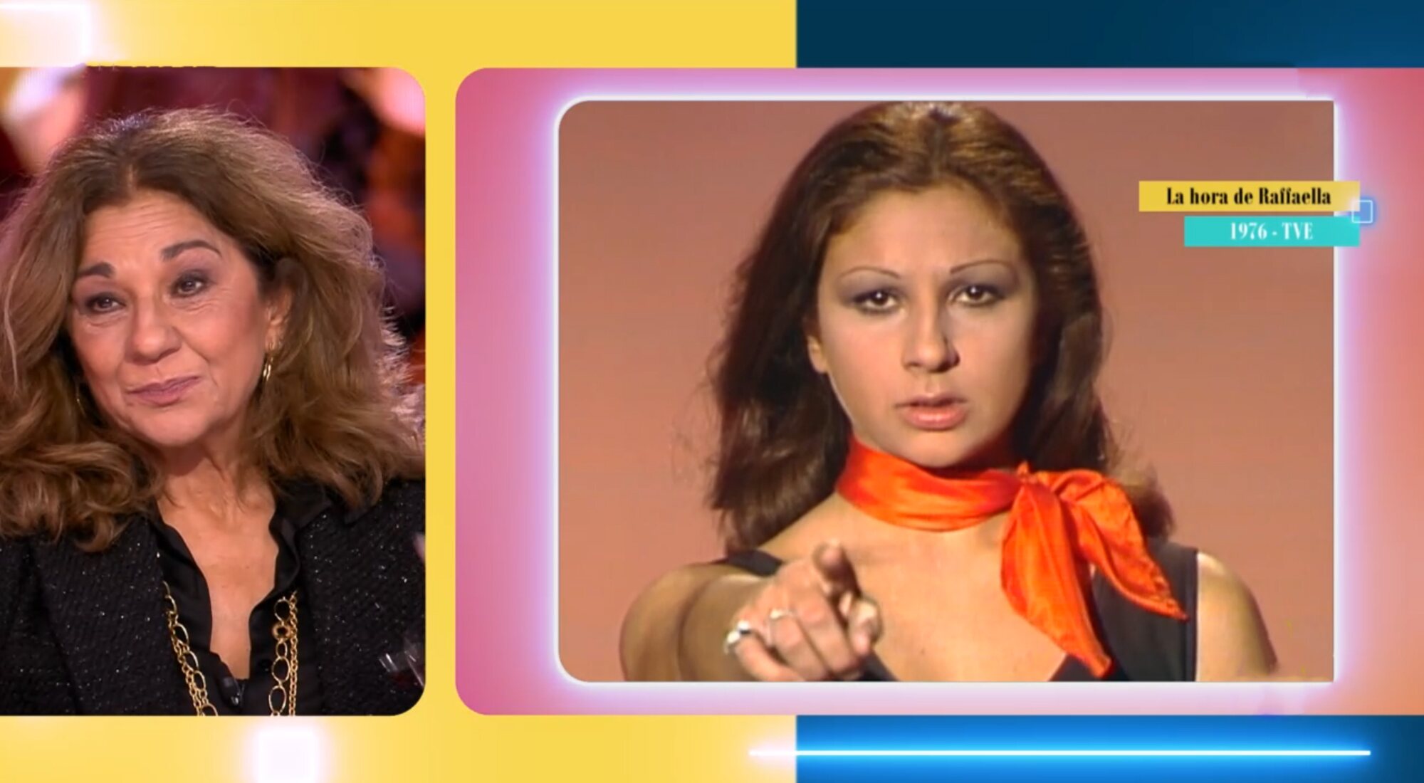No obstante, el equipo sí contaba con "una actuación que hiciste en el programa de Raffaella Carrà, 'La hora de Raffaella'", tan solo unos meses después, ya en 1976. "¿Cómo te sientes cuando te ves cantando el 'Amor, amor'?", planteó Otero, dando paso al vídeo, del que Flores explicó que lucía un traje prestado por su amiga Charo Vega. "Qué horror, qué cara de pandereta", soltaba la artista, al verse cantando cuando solo tenía 17 años de edad. La presentadora comentó que "eras la hija de Lola Flores y esa presión debía de ser insoportable", algo con lo que su invitada se mostró de acuerdo: "Era insoportable y, además, es que yo no quería ser cantante ni artista. Quería ser actriz y mira, al cabo de los años lo he conseguido".