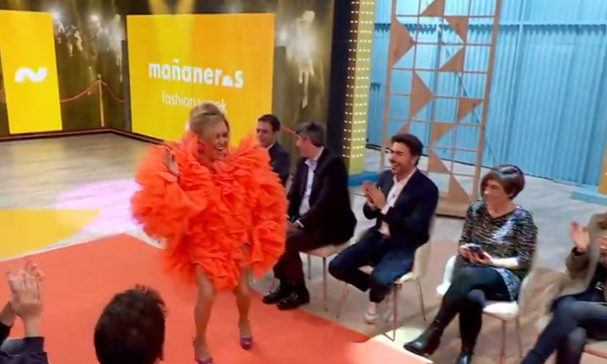 El reivindicativo desfile no fue el único que acogieron desde la 'Mañaneros Fashion Week', ya que alguna que otra colaboradora también se animó a desfilar, como Lydia Lozano, quien se puso en manos del diseñador José Perea, rostro habitual de 'Sálvame' en estas ocasiones. "Vamos a ver una Lydia muy cambiada, vamos a verla con un outfit que no hemos visto nunca", avanzaba él, dando paso a la entrada triunfal de la colaboradora con un vestido naranja que recordaba al que llevaba Candela Peña en los Premios Feroz.