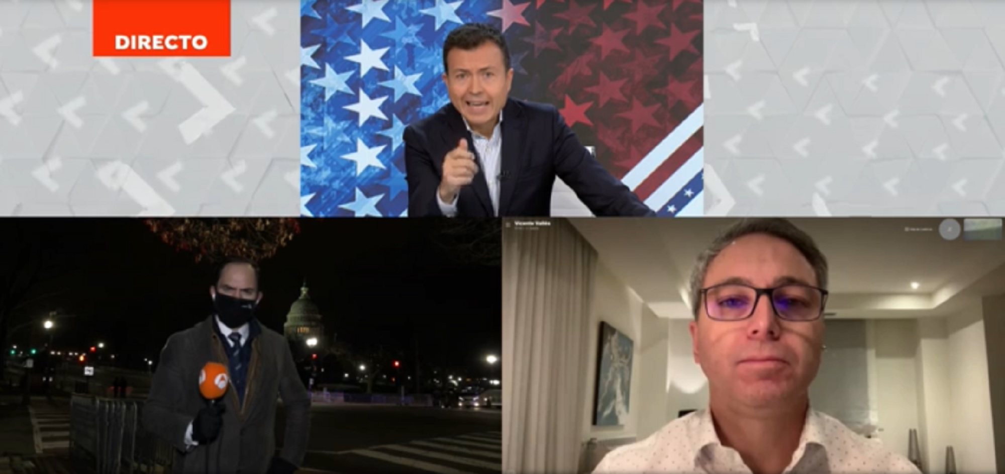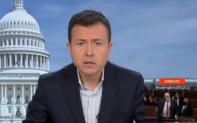 Manu Sánchez ha debutado este jueves 7 de enero en el informativo matinal con la noticia del asalto al Capitolio por parte de un grupo de seguidores de Donald Trump. Para ello, ha conectado en directo con el corresponsal de Antena 3 en Estados Unidos, José Ángel Abad, que vivió los sucesos en primera persona y que ya narró en el informativo de la noche anterior cómo los asaltantes llegaron hasta la sala del Senado.