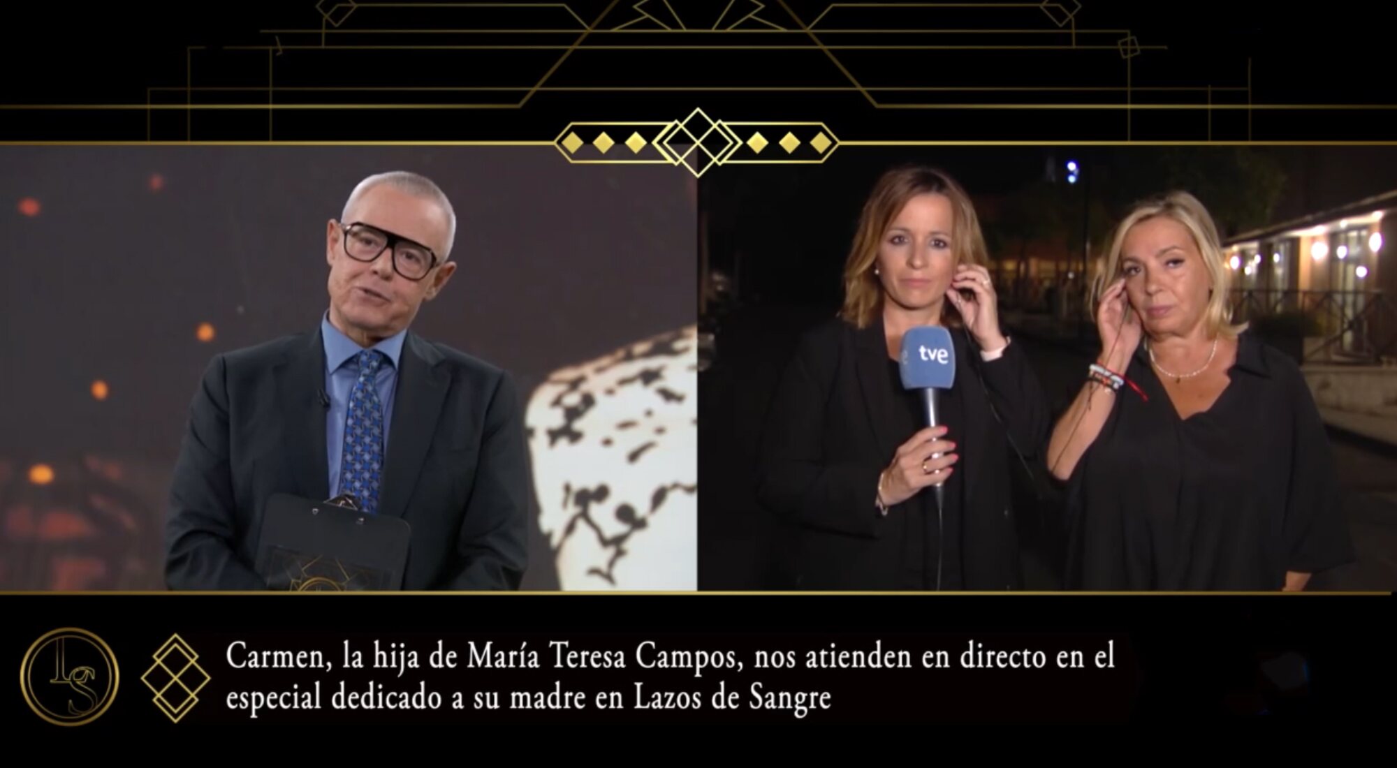 ?? Carmen Borrego entra en directo en el @lazosdsangreTVE tributo a su madre, María Teresa Campos.