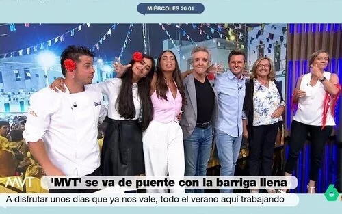 El 15 de agosto, fiesta en toda España, está marcado por las celebraciones y las verbenas en pueblos y ciudades. 'Más vale tarde' quiso aprovechar el programa del 14 de agosto para hablar de esto en su recta final e incluso llevaron a cabo un plan muy especial: una merienda en una verbena improvisada en plató con sus presentadoras, sus colaboradores y Carlos Maldonado.