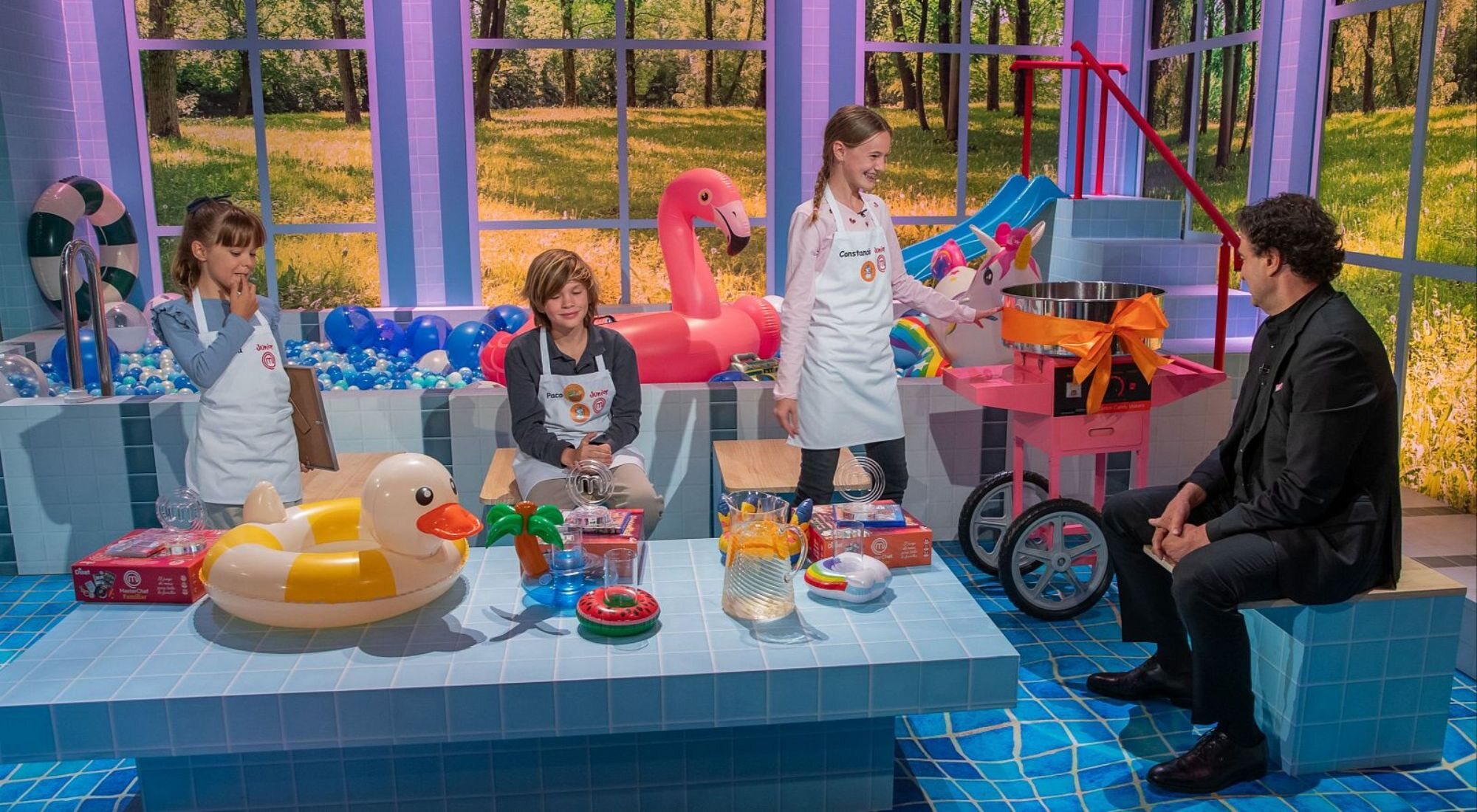 La primera prueba tuvo el mar y el pescado como protagonistas y, en poco más de una hora, los niños elaboraron platos como esencia de camarones y vainilla, cochinillo marino o torta de aceite de camarones con anís. Después, llegó la segunda prueba, en la que María Pombo se puso el delantal y ayudó a sacar las elaboraciones adelante. Una vez acabó esta parte, Martina, Paco y Constancia ya se encontraban en la parte baja de la lista de puntos.