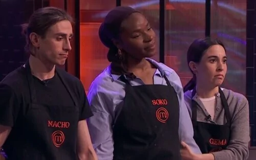 Finalmente, Pepe anunció el veredicto del jurado: "El aspirante que abandona las cocinas es Nacho y Soko". Los concursantes quedaron boquiabiertos ante la decisión de los jueces, que argumentaron que los expulsados no habían escuchado bien las exigencias del reto. "Me salvo pero bueno, yo he hecho mal el postre pero he hecho lo que se ha pedido. Las pequeñas diferencias es lo que escribe la diferencia", dijo Gema, la compañera salvada.