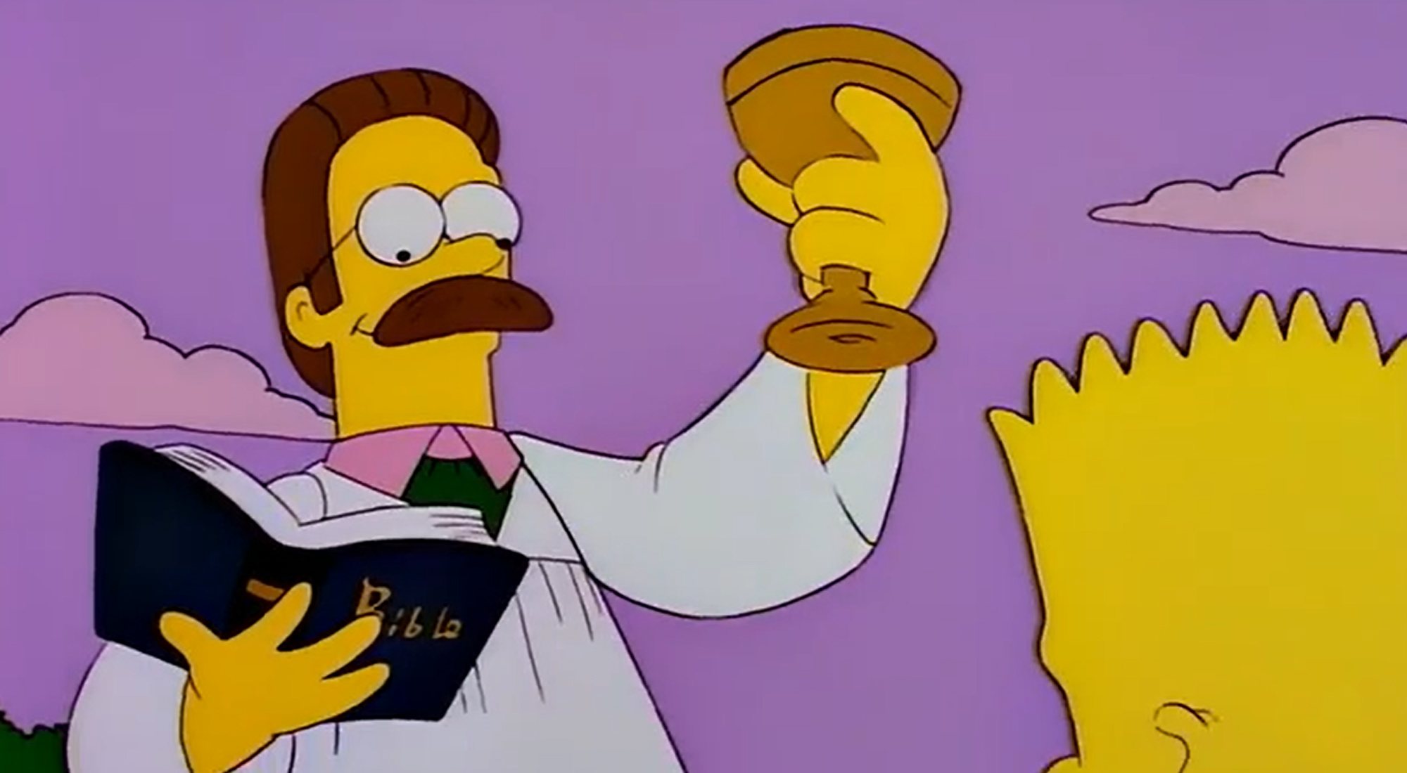 Tras la demolición del casino del señor Burns, la familia Simpson acudía a un lavacoches, donde Homer presenciaba cómo Flanders utilizaba, supuestamente de forma fraudulenta, una tarjeta de la tercera edad para recibir un descuento. Así comienza el décimo episodio de la décima temporada de 'Los Simpson', "Viva Ned Flanders", donde se descubría que Flanders tenía más edad de la que aparentaba: concretamente, sesenta años.