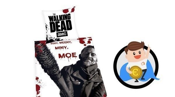 - Juego de sábanas de 'The Walking Dead': Sabemos que Negan no es uno de esos personajes de 'The Walking Dead' con los que la gente se sentiría segura. Aun así, este villano ha protagonizado escenas muy características y además acabó conquistando al fandom de la serie. Por esta razón, el hecho de tener unas sábanas de su típico "Eeny Meeny Miny Moe" es algo que deberías plantearte seriamente. Comprar: 38,40 euros