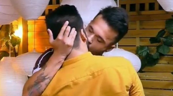 Mikel y David besándose en 'First Dates'