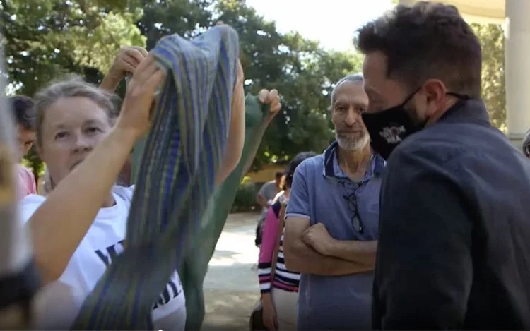 Barber acudió a esta concentración negacionista en Lleida, donde se encontró a un grupo de alrededor de 30 personas sin mascarilla. Una mujer, que parece ser la líder del encuentro, advierte al resto de convocados que hay una cámara de Cuatro que intenta grabar el acto y pregunta: "¿Nos organizamos para impedir que graben?". Todos dicen que sí, y la reacción de los negacionistas es poner pañuelos encima de las cámaras y grabarles con los móviles a los del equipo del programa, algo que a Boro parece no importarle.