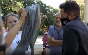 El cámara se queja de que no se esté manteniendo la distancia de seguridad y es cuando una de las negacionistas le dice: "Pues aléjate porque estamos todos infectados" y, acto seguido, empieza a toser y fingir estornudos. "¿Por qué le tose a mi compañero?", pregunta Barber obteniendo lo siguiente como única respuesta: "Sí, hombre, a ti te voy a contestar".