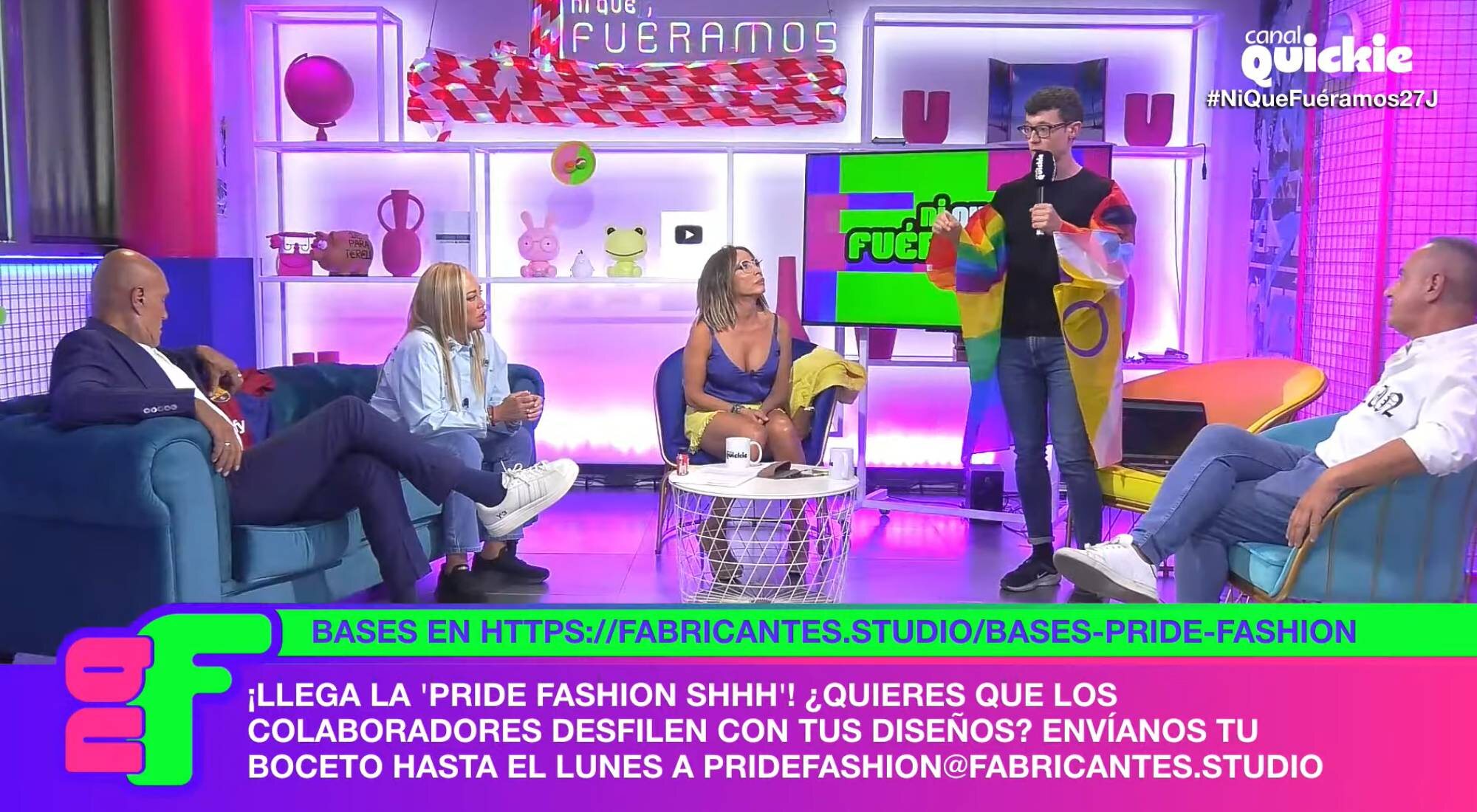 "Estamos muy sensibilizados con el tema. Todo nuestro apoyo porque somos nosotros mismos también y queremos celebrarlo de una manera muy heavy", prosiguió Escaleto. El colaborador anunció que el programa celebraría "un eventazo", con el nombre de "Pride Fashion Shhh", en el que "diseñadores de este país o del mundo os van a vestir a vosotros para que el próximo jueves desfiléis con sus diseños". Unos diseños que tendrían una característica común: "Tienen que estar construidos con la bandera LTBIQ+, la que incluye absolutamente todo el mundo, a todas y todes".