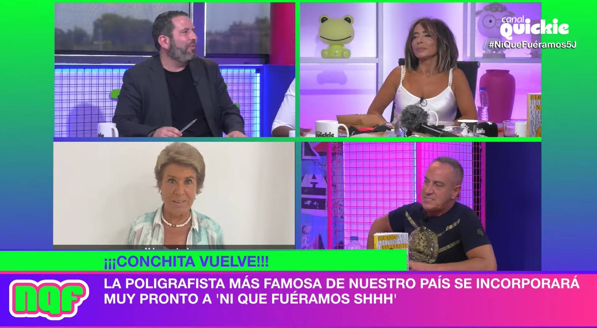 El miércoles 5 de junio, 'Ni que fuéramos Shhh' inició su emisión avanzando varios bombazos a lo largo de la tarde, el último de ellos, en el tramo final del programa. Era entonces cuando los responsables del programa enviaron a Lydia Lozano a la calle, maletín en mano, para descubrir finalmente su contenido, relacionado con el nuevo fichaje del programa que finalmente se acabó dando a conocer: Conchita y su inolvidable polígrafo.