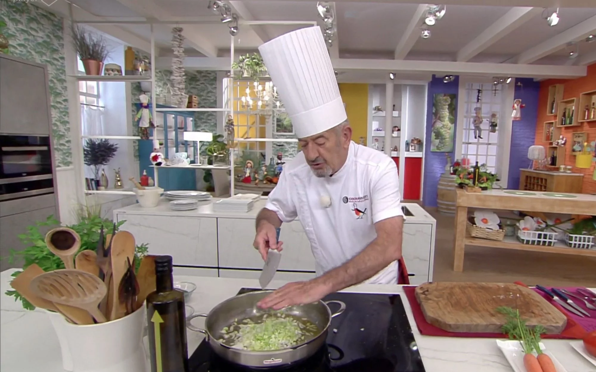 Cocina abierta de Karlos Arguiñano ofrecía la última entrega de la temporada desde plató antes de empezar sus entregas al aire libre. Mientras Karlos Arguiñano preparaba el plato, vio la oportunidad de lanzar un mensaje antes de irse de vacaciones. "Siempre que termino las temporadas suelo pedir excusas", comenzaba.