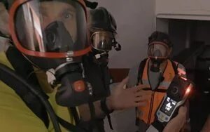 Una vez allí, los profesionales explicaron que el valor normal de dióxido de carbono oscilaba 0,04% o 400 partes por millón y 0,1% o 1000 ppm. "Donde empiezan los problemas es a partir de los 5.000 ppm", apuntó Hernández, quien mostró al equipo del programa los pájaros muertos que yacían por las calles vacías. Además, fueron registrando el CO2 en el ambiente, en el que detectaron 90.000 ppm, un 9%, cifra con la que "estamos hablando de niveles muy tóxicos", mientras que a partir de 14% o 140.000 ppm "es mortal". No obstante, el aparato Calleja había cogido prestado de los vecinos, más barato, no podía registrar cifras más allá de 5.000 ppm: "Eso es peligroso, porque si tú no sabes que lo máximo que da un sensor barato es 5.000 y tienes 90.000, te mueres en nada porque estás confiado".