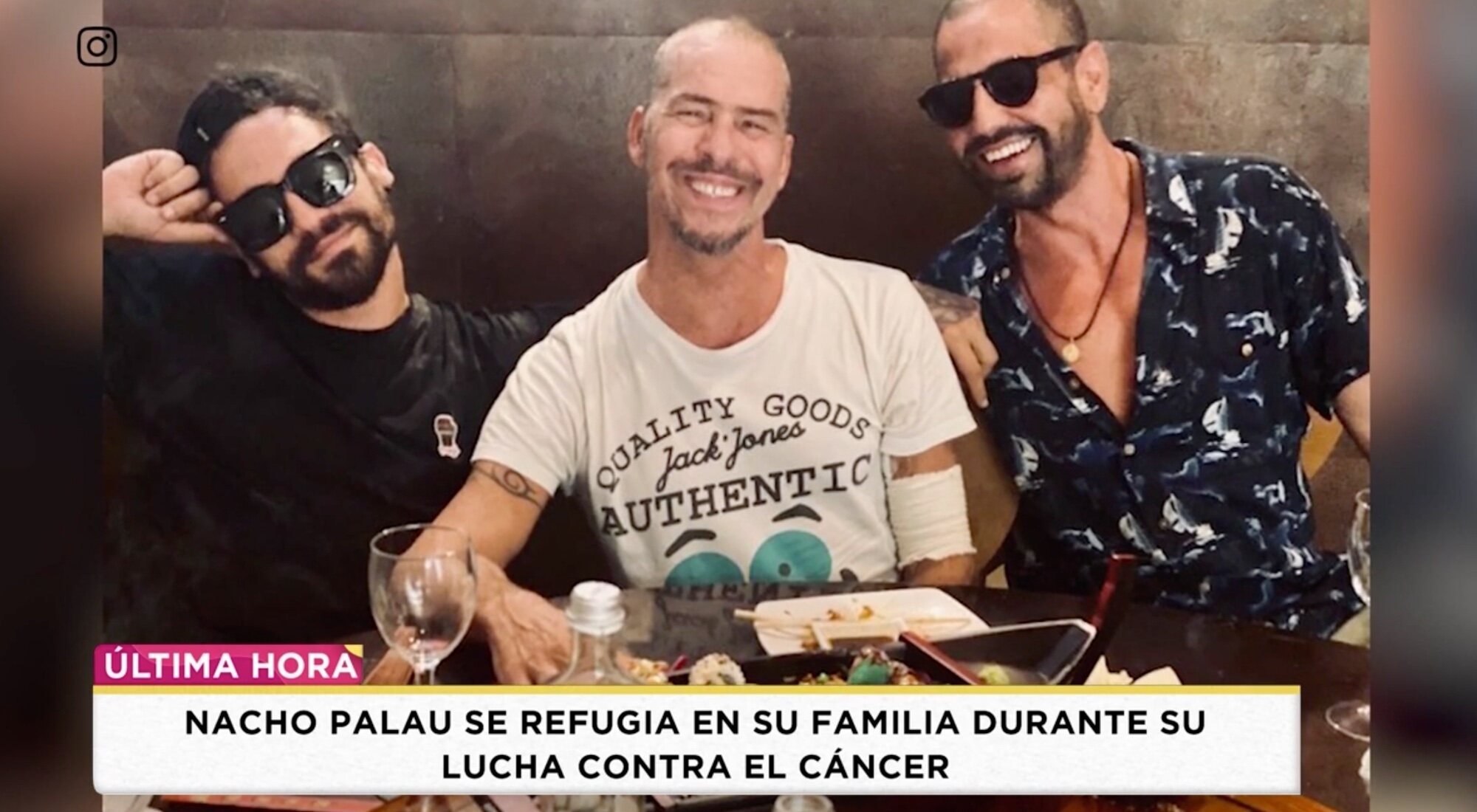 En dicha instantánea se ve cómo Nacho Palau, delgado y perdiendo pelo, posa sonriente junto a Yago, su sobrino y defensor en 'Supervivientes', y Cristian, su novio. Con esta imagen en donde se encuentran comiendo, el exrobinson muestra que está haciendo frente al cáncer con bastante optimismo.