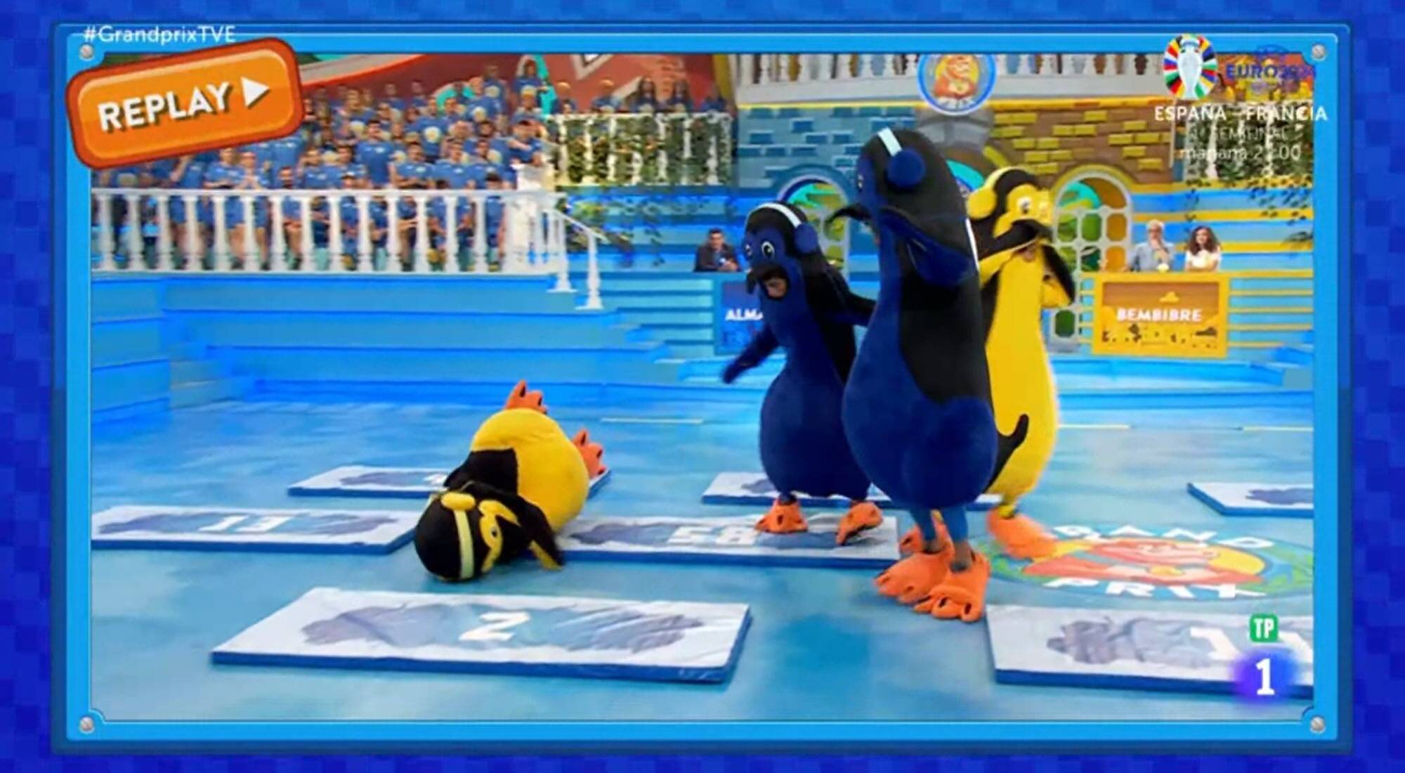 "La primera pingüina se ha tropezado y los otros se han equivocado. Por lo tanto, el primero que se equivoca, que ha sido el amarillo, queda eliminado" aclaró Langa, antes de que Ramón diera paso a la repetición del momento, en medio de las protestas de los presentes en plató. "Yo lo he visto muy claro: ha sido un tropiezo", recalcó la árbitra, sin acallar las confusas quejas, por lo que Ramón decidió tomar la palabra.