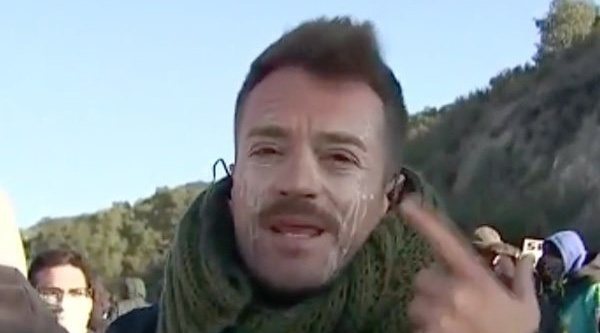 Hasta la protesta se ha desplazado Mikel Valls, reportero de 'El programa de Ana Rosa' que ha sufrido en sus propias carnes los efectos del gas pimienta. Mientras mantenía una conexión en directo con Ana Rosa Quintana, Valls ha tenido que interrumpir su discurso: "Es una sensación muy extraña, se mete en la garganta y también en los ojos", explicaba mientras avanzaban hacia territorio español conducidos por la Gendarmerie. Los manifestantes comenzaron a cantar "prensa española, manipuladora".