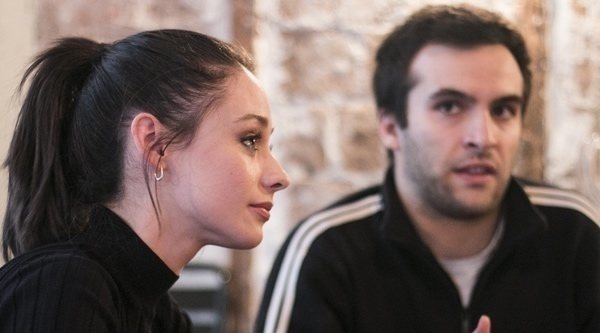 RG: La historia de la ficción está llena de parejas que funcionaban bien. Elena y yo no nos hemos enrollado nunca, tampoco somos mejores amigo, no nos vemos cada día. Somos dos buenos amigos que nos escribimos de vez en cuando, que quedamos a tomar cervezas, nos lo pasamos muy bien, nos reímos mucho juntos y tenemos muchas cosas en común. Pero es una relación que se ha forjado delante de la cámara. Creo que tiene que ver con cómo pensamos durante el rodaje. Muchas veces además tenemos un sentido del humor muy parecido. A veces está pasando algo delante nuestro que yo la voy a mirar y ella ya me está mirando y nadie más en toda la sala se ha dado cuenta aunque haya noventa personas. Eso nos pasa cada dos por tres. Eso tiene que ver con una manera de pensar dentro del set.
