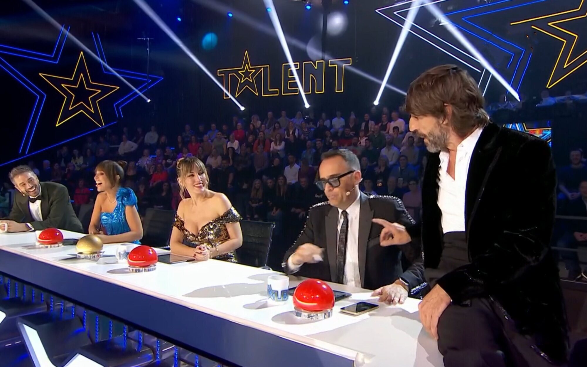 "Estoy alargando porque no está preparado todavía", comunicaba Millán, tras una pausa publicitaria, en referencia a la escenografía que acompañaba a Rrealina, cuyos "focos están montados pero no funcionan en este momento". Mejide quiso intervenir justo cuando las luces ya se encendían, por lo que Millán le indicó que "ahora lo que alargues, está de más". "¿Feijóo y Pedro Sánchez también van a salir o no?", planteó aún así el juez. "Están esperando para actuar, porque hacen una actuación que se llama 'La renovación del Tribunal'. Así que, esperando a ese numerazo, vamos a disfrutar primero de Rrealina", bromeó el presentador, despertando aplausos y risas entre los presentes.
