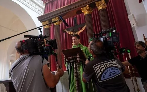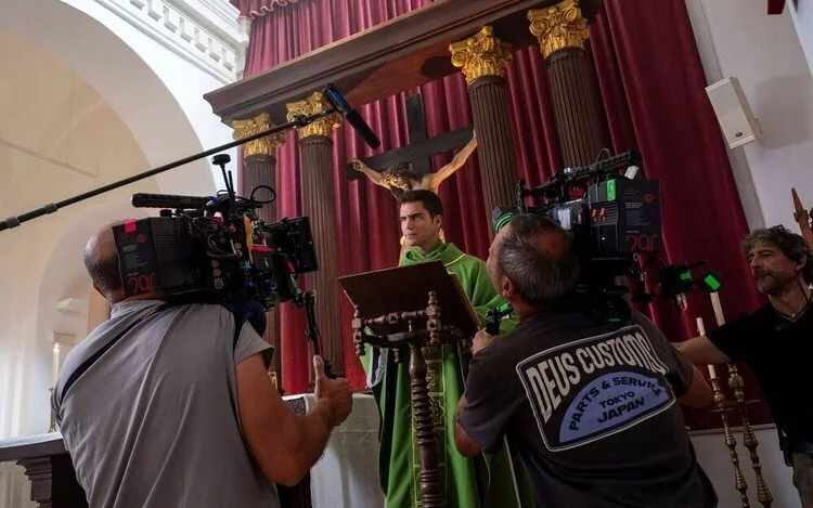 Maxi Iglesias interpreta a Fermín, un sacerdote que se enamora de Ana (Karina Kolokolchykova), la mujer de su primo Isaac (Martiño Rivas), por lo que su parroquia es uno de los escenarios habituales en la trama. Para ello el equipo de la ficción ha montado una iglesia ficticia sobre el Centro Cultural Santa Catalina, una antigua iglesia de Conil que fue desacralizada y que a día de hoy se utiliza como sala de exposiciones. En la misma plaza del pueblo se ubican también el bar y el ayuntamiento, creando un triángulo perfecto sobre el que colisionan las tramas.
