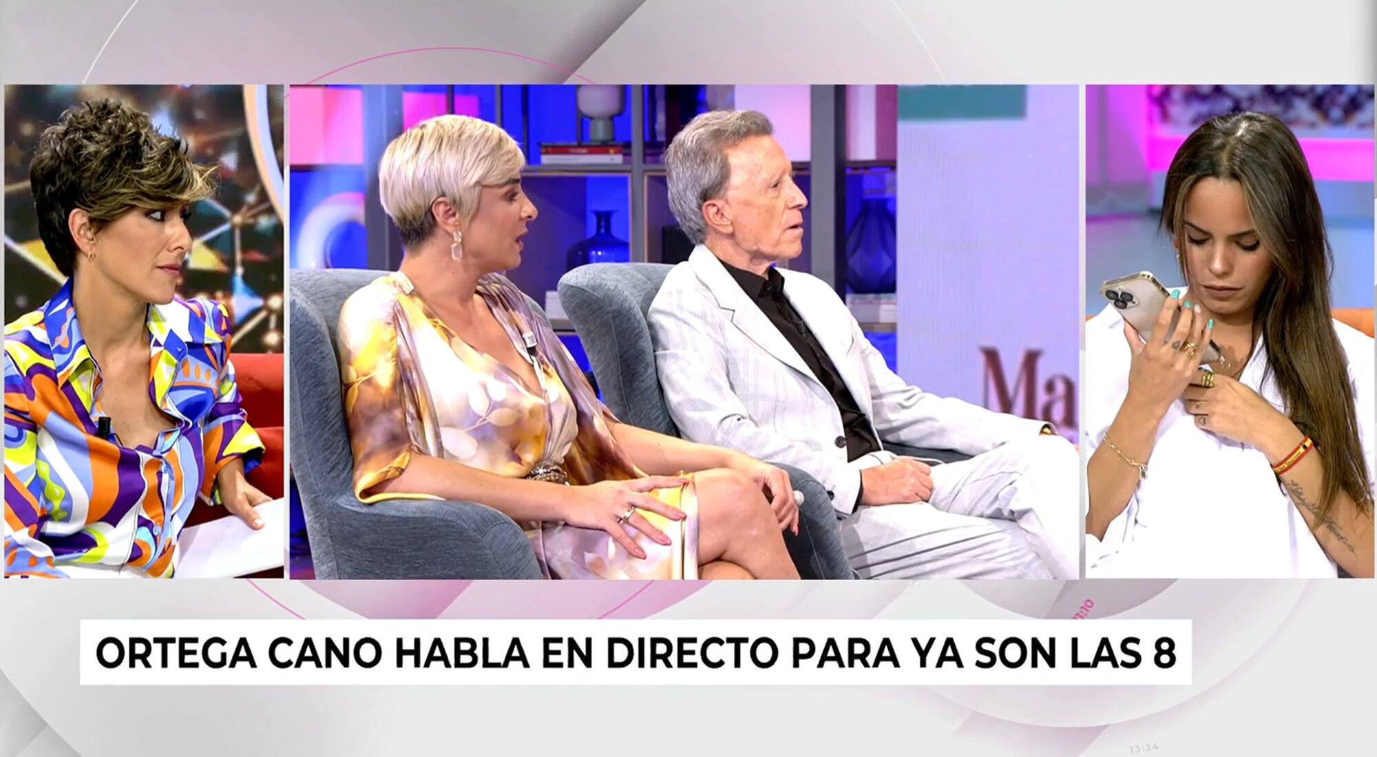 "No voy a hablar más, porque creo que he dicho más de lo que tenía que decir, y pido por favor que este tema ya lo dejen. Si tienen que ir a televisión, que vayan, pero que hablen de sus cosas", recalcó Ortega Cano, ante lo que Ónega aseguró que "tomamos nota" para después preguntar si "se lo va a decir a Ana María". "Igual que se lo estoy diciendo a Gloria, se lo voy a decir a ella en persona. Entiendo que tiene que trabajar, pero que intenten dejar mi nombre a un lado. Tanto uno como la otra", contestó el torero, quien incluso declaró que "estoy regular de salud y, con todo esto, un día me va a dar un patatús" e insistió en que "no quiero polémicas y menos con mi familia". "A Gloria la tenemos porque es una profesional y nos encanta cómo trabaja. No viene aquí a hablar de Ana María. Eso que lo tenga usted muy claro. Ni de su padre, ni de nada de su familia. Viene a trabajar y a hacer su carrera. Ella lo sabe", defendió Ónega. "Está bien que lo recalque, que algunos lo dudan", intervino Gloria Camila, agradecida.