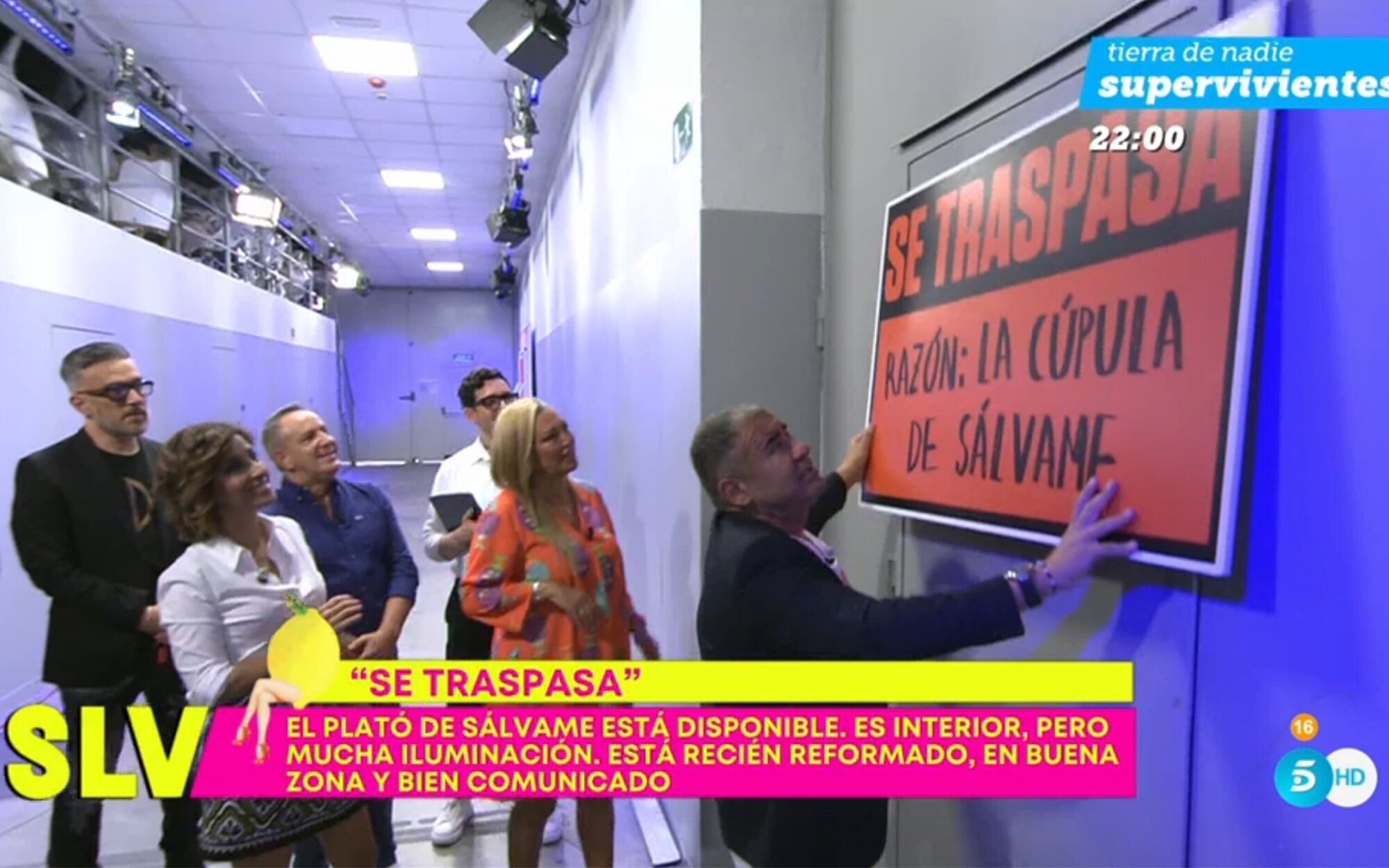 'Sálvame' va a morir, pero han decidido que lo harán con mucha comedia hasta el final de sus días. Si el lunes 8 de mayo, el primero desde que se conoció su cancelación, reunieron a los colaboradores para actualizar su currículum, en el segundo día han colgado el cartel de "se traspasa" para buscar compradores para su plató. Por ello mismo, han comenzado la emisión con Jorge Javier Vázquez y el resto de colaboradores tratando de colocar el cartel.