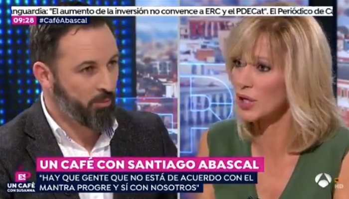 Además, Abascal destacó que, a su juicio, "muchos hombres están padeciendo calabozos por una simple denuncia", apuntando que "un 87% de las denuncias por violencia de género son archivadas". Susanna Griso, en cambio, le recordaba que tan solo un 0,001 de las denuncias son falsas. "Nos preocupa la verdad, defender a todas las víctimas", dejó caer Abascal para confirmar lo que ya han defendido repetidamente desde su partido: "una ley intrafamiliar que proteja a las mujeres y a todos".