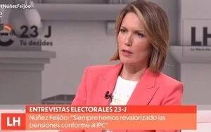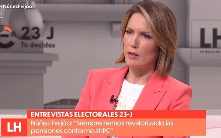 "Nuestro partido nunca dejó de revalorizar las pensiones conforme al IPC, el único partido que congeló las pensiones fue el Partido Socialista Obrero Español, que, por cierto, el señor Sánchez era diputado en la cámara", aseguraba el popular. Durante esas palabras, se oía de fondo el pasar de páginas por parte de la presentadora, que interrumpía sin vacilaciones al entrevistado. "No es correcto, señor Feijóo", cortaba con el rostro muy serio.
