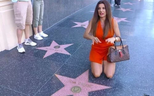 Monroy mostró el Paseo de la Fama (Walk of Fame) o, como ella lo llamó, el "Walk to the Fame", con las estrellas más grandes del cine grabadas en sus losas. Contó al programa de Cuatro varios momentos curiosos vividos con famosos, como la vez que coincidió con Tom Cruise y quedó maravillada por su colonia. Otra anécdota vivida durante la estancia de la actriz en Los Angeles sucedió en compañía de Antonio Banderas. Su mujer entonces, Melanie Griffith, le pareció a Monroy una "celosa", pues le dio un fuerte codazo mientras conversaba con su marido.