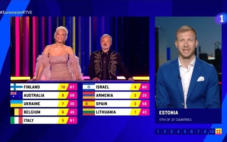 Por nuestra parte, los votos del jurado de España, que han contado con Ruth Lorenzo como portavoz, han quedado así: 12 puntos para Suecia, que ha sido la ganadora de la edición; 10 para Italia, 8 para Israel, 7 para Estonia, 6 para Portugal, 5 para Francia, 4 para Bélgica, 3 para Armenia, 2 para Noruega y 1 para Finlandia.
