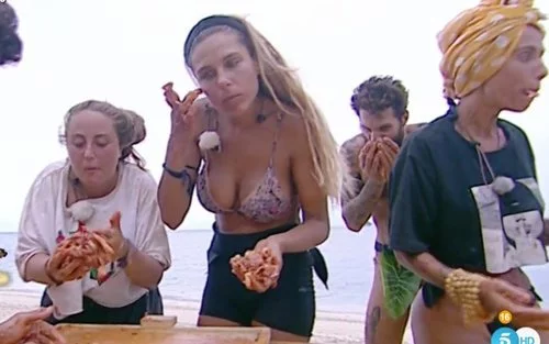 No dio tiempo a que Lara Álvarez diera por comenzado el tiempo del que disponían para comerse la lasaña que los concursantes ya se abalanzaron sobre la recompensa. La imagen fue muy dura, y es que la fuerte sensación de hambre les hizo devorar la comida como pocas veces antes se había visto en el programa. Las ansias pudieron con ellos, lo que dejó varios trozos de lasaña sin comer y otros tanto desperdiciados. A Elena se le caía, mientras que Albert Barranco se comía los restos del suelo mezclados con arena.
