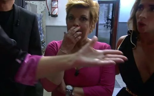 Otra de las personas que fueron a aliviar el enfado de Terelu fue María Patiño, que un rato antes le había dedicado una canción a la aspirante a ganar 'La última cena'. Ese momento tuvo lugar cuando la presentadora de 'Socialité' irrumpió en el plató al ritmo de Marisol, el cual la llevo a animarse y dedicarle unos versos a la malagueña, que los recibió entre risas: "Porque yo te quiero, aunque tú no a mí. Pero no me importa, porque somos así."