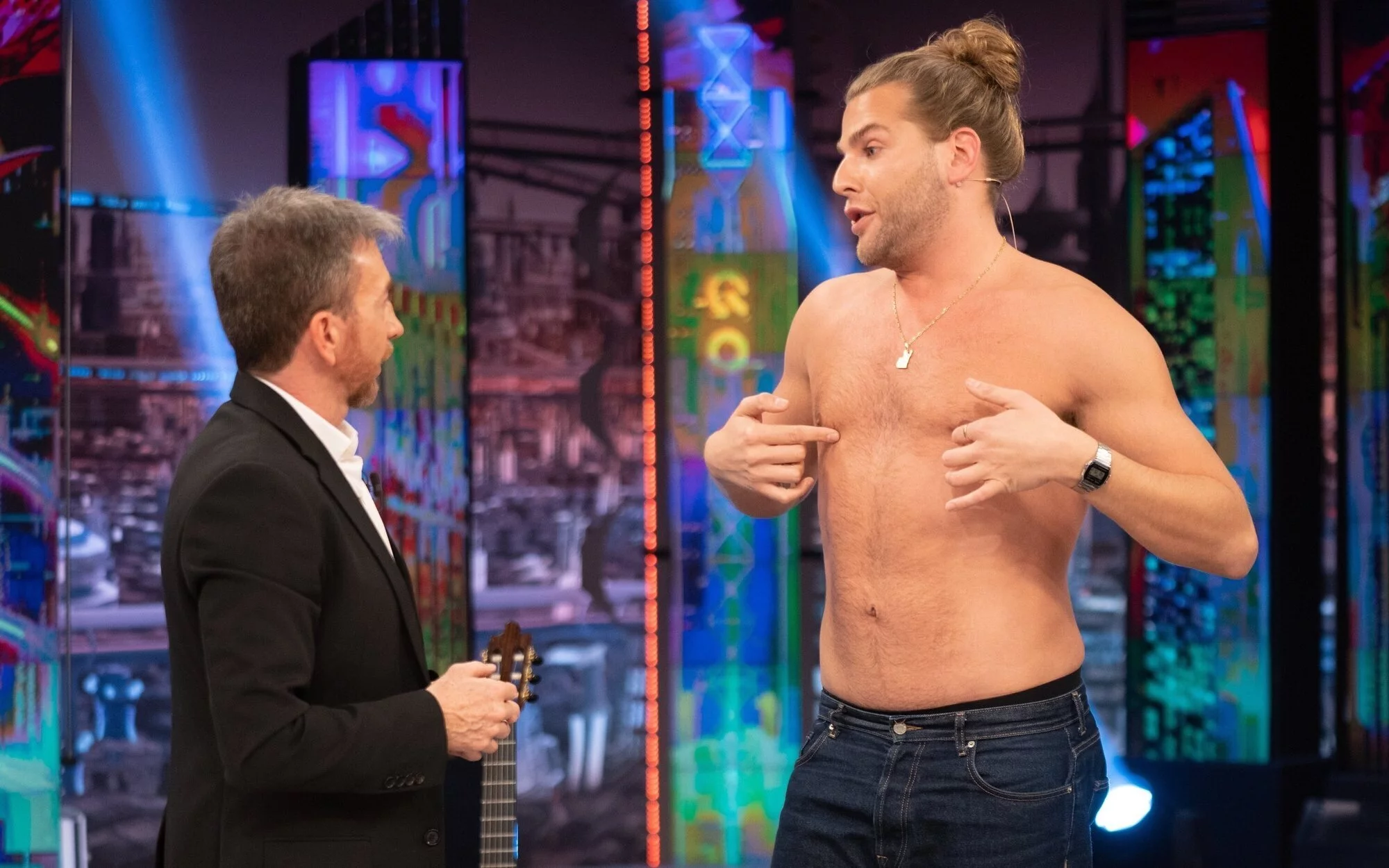 El invitado no ha tardado en quitarse la camiseta para ensañar una de sus últimas operaciones: "Me han puesto abdominales, bíceps, tríceps", expresaba ante el presentador que no daba crédito. "Me hice de la rodilla hasta el cuello. Le dije al cirujano que sacara toda la grasa que tenía. Tengo hecha una masculinación y me he puesto bótox en la cara. También me hice el balón intragrástico", expresaba sin rodeos y sin complejos.