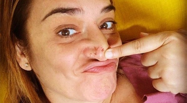 Tras lo publicado en la noche del domingo, el lunes por la mañana ha querido tranquilizar a todos sus seguidores con una nueva fotografía y un texto en el que se puede comprobar que la presentadora está bien y con buen humor. "Me preguntáis todos cómo estoy. Ya me veis, con la nariz de Mr. Potato. Y como si me hubiera atropellado un camión. Perdí el equilibrio y aterricé como pude".