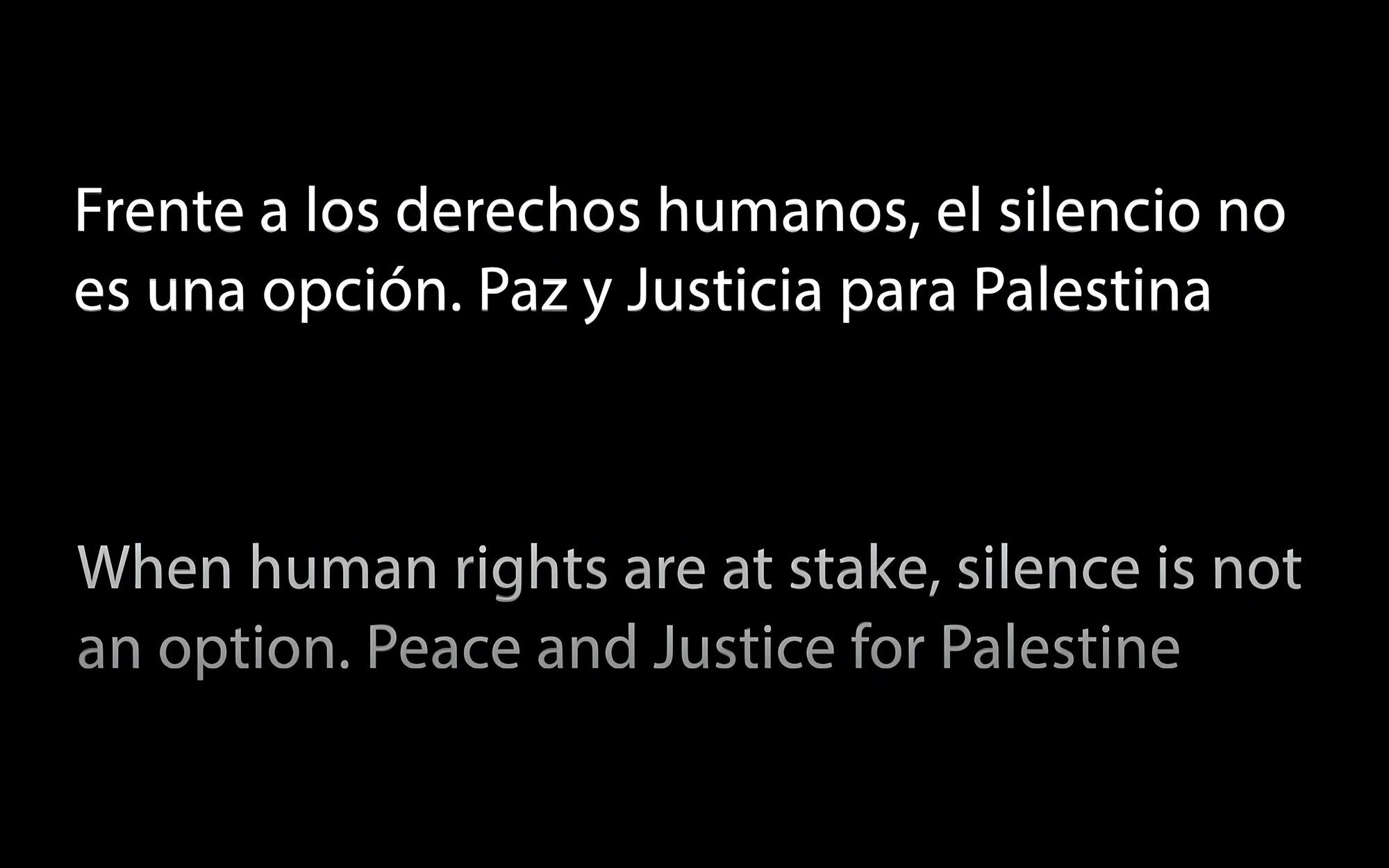 TVE ha comenzado el certamen con un rótulo en español e inglés con un breve mensaje: "Frente a los derechos humanos, el silencio no es una opción. Paz y justicia para Palestina". Eso sí, llegado el momento de la participación de la cantante durante la final, la introducción ha sido de lo más ascética, con un texto leído sobre la historia de la cantante en tono serio y con muchos silencios entre medias.