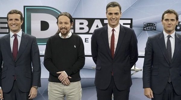 Pedro Sánchez, Pablo Casado, Albert Rivera, Pablo Iglesias y Santiago Abascal tendrán la oportunidad de transmitir sus propuestas a la ciudadanía en este debate a cinco organizado por la Academia de la Televisión, que distribuirá la señal al resto de medios. Como es habitual, se ha sorteado el orden de intervenciones finales: Pablo Iglesias cerrará el minuto de oro tras Abascal, Rivera, Sánchez y Casado.