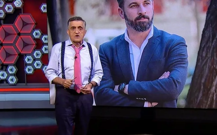 "Yo si fuera de Vox y buscase a gente que vive muy bien a costa de nuestros impuestos, miraría mucho más cerca. Miraría menos a los que llaman MENA y miraría más a los "masionibe": mayores sin oficio ni beneficio", decía el presentador en tono de humor, al mismo tiempo que aparecía una imagen de Santiago Abascal, líder del partido, en la pantalla que tenía detrás.
