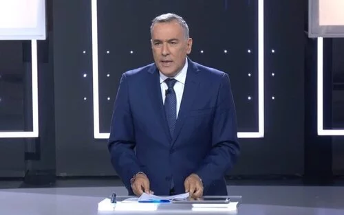 "Muy buenas noches. Hemos invitado a los cuatro candidatos de los cuatro principales partidos que se presentan a las elecciones en este debate decisivo en la radio televisión pública", arrancaba el periodista, tras lo cual recordaba que "tres de ellos han aceptado", antes de señalarlos, ya situados en sus respectivos atriles.