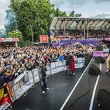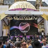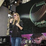 Edurne ensaya en el Eurovision Village durante Eurovisión 2015