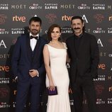 Nacho Fresneda, Cayetana Guillén Cuervo y Hugo Silva en los Goya 2017