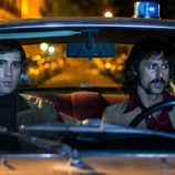 Pacino y su acompañante, muy serios en el coche en 'El Ministerio del Tiempo'