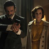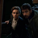Hugo Silva y Belén Fabra en el rodaje de la tercera temporada de 'El Ministerio del Tiempo'
