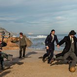 Los actores de 'El Ministerio del Tiempo' en el rodaje de una escena en las playas de Peñíscola