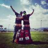 La incómoda e improvisada ducha de los primos ('Pekín Express') bajo la atenta mirada de un grupo de hombres