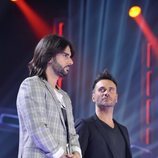 Melendi guía a Ruimán hacia la salida del plató en Los Directos de 'La Voz'