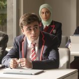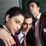 Samuel, Nadia y Christian en clase durante la primera temporada de 'Élite'