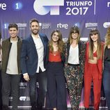 Roberto Leal, Eladio Jareño, Noemí Galera, Tinet Rubira y Toni Sevilla posan con los finalistas de 'OT 2017'